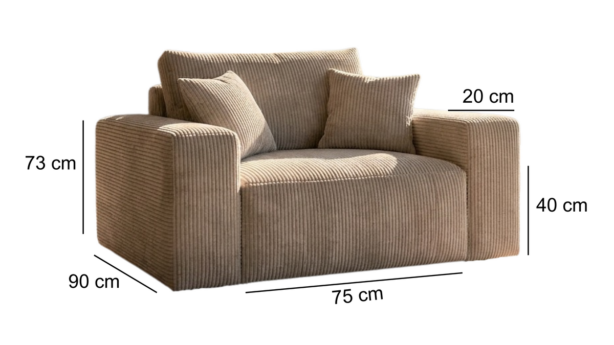 Modernus, kompaktiškas fotelis Plush su minkšta, jaukia forma ir plačiais porankiais. Lengvai dera prie įvairių interjero stilių – nuo skandinaviško iki modernaus ar minimalistinio.